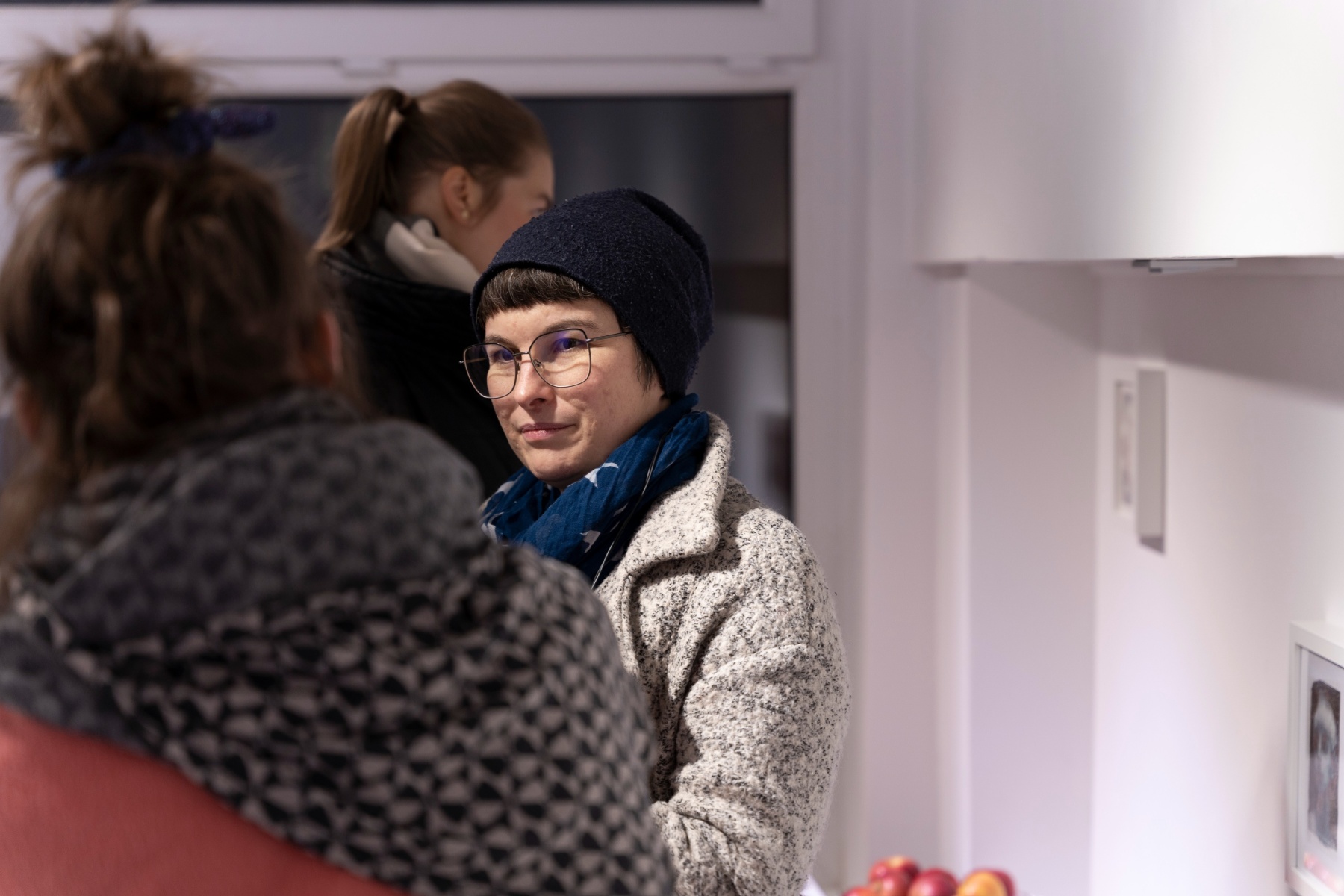 Odpowiedzi na wyżej postawione pytania próbuje udzielić zaproszona do wystawy artystka Paulina Buźniak – zdobywczyni III miejsca oraz wyróżnienia Miasta Poznania podczas II edycji Biennale Tkaniny Artystycznej w Poznaniu w 2019 roku, za pracę „Próba identyfikacji”. Prezentowane na wystawie pt. Dopasowania realizacje, zebrane w dwóch cyklach, są opowieścią o poszukiwaniu prawdziwego obrazu siebie usnutą na kanwie z oczekiwań. Tych zewnętrznych, ale także takich, które z czasem stają się wewnętrznymi.