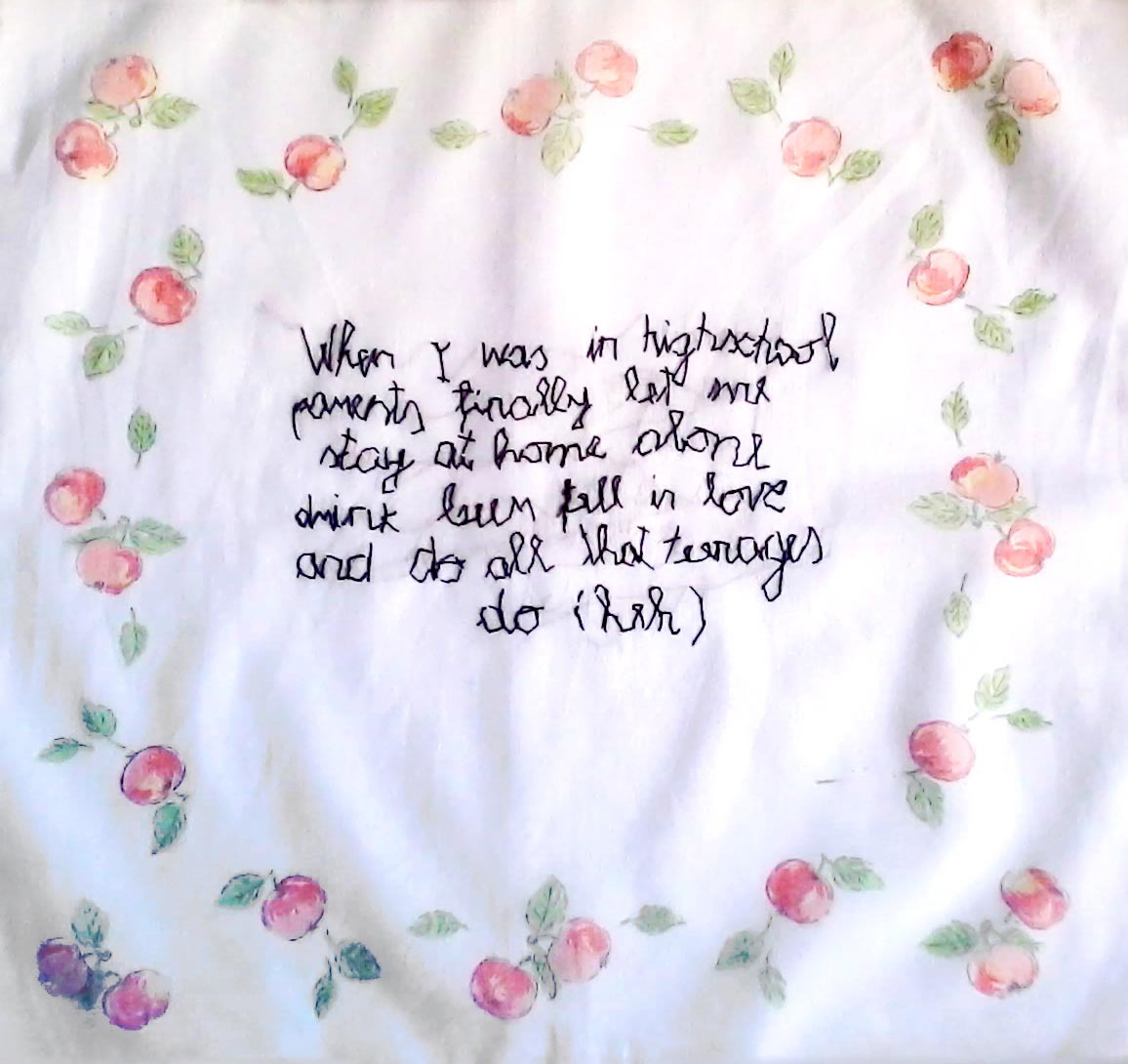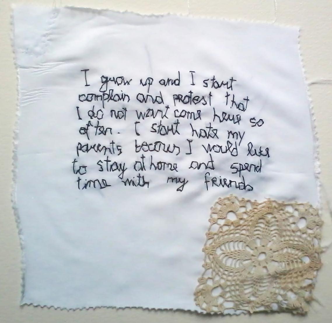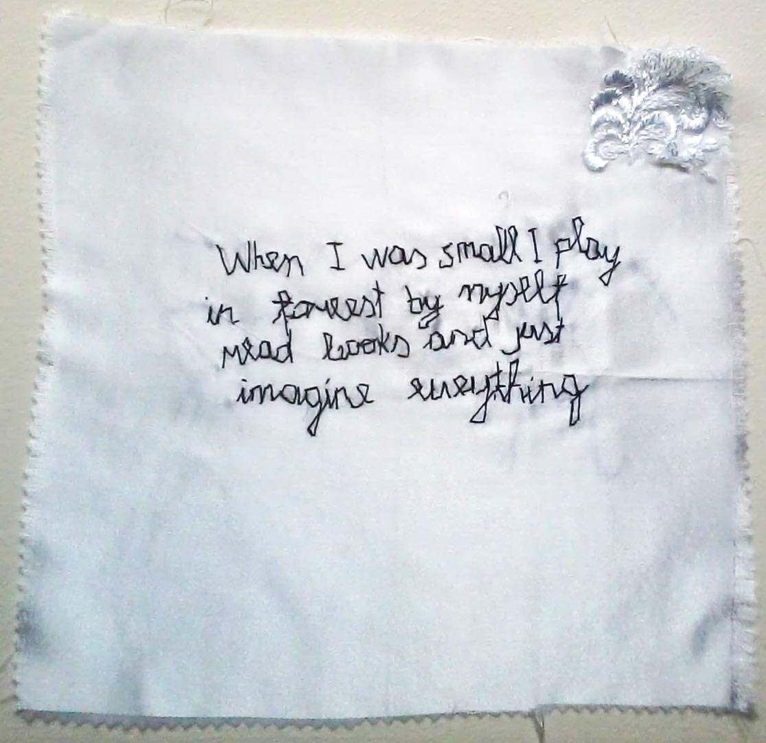 Marina Kostic, serbska artystka młodego pokolenia, nawiązuje w swej twórczości do stereotypowo kobiecych zajęć, jakimi zawsze było tkanie, haftowanie czy szycie. Inspirację do cyklu „Małe prywatne historie” oraz „Młodość” stanowią motywy tradycyjnego rękodzieła serbskiego, które w przeszłości były powszechnym elementem wystroju w serbskich domach, dziś natomiast wydają się sztuczne, sielankowe i drobnomieszczańskie. Te precyzyjne robótki (kwiaty, domy, zwierzęta, krajobrazy, motywy religijne) ukazują niezwykłą zdolność repetycji, drobiazgowe przywiązanie do szczegółów. Proces ten wyklucza wszelkie formy kreatywności i, w oczach artystki, odzwierciedla aktywność kobiety, która została poświęcona domowi i rodzinie. Marina Kostic używa tych motywów, aby podkreślić związek pomiędzy ich twórczyniami i sobą, również wykorzystującą tkaninę jako powierzchnię tworzenia. Jednocześnie pragnie zwrócić uwagę na delikatny proces pamięci oraz możliwość tworzenia nowych narracji, jaką daje wykorzystanie tradycyjnych technik. Postacie ludzkie w jej pracach są haftowane lub wykonane w programie cyfrowym i transferowane z folii na tkaniny. Robótki ręczne i cyfrowe rysunki, tradycyjne i nowoczesne technologie, intuicja i dane, czas i proces tworzenia, wewnętrzny i zewnętrzny świat, relacje pomiędzy sferą prywatną i publiczną – wszystko to odnajdziemy w pracach Mariny Kostic.
