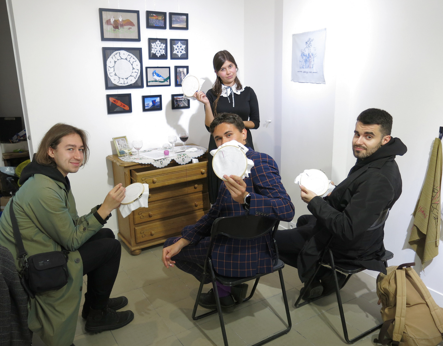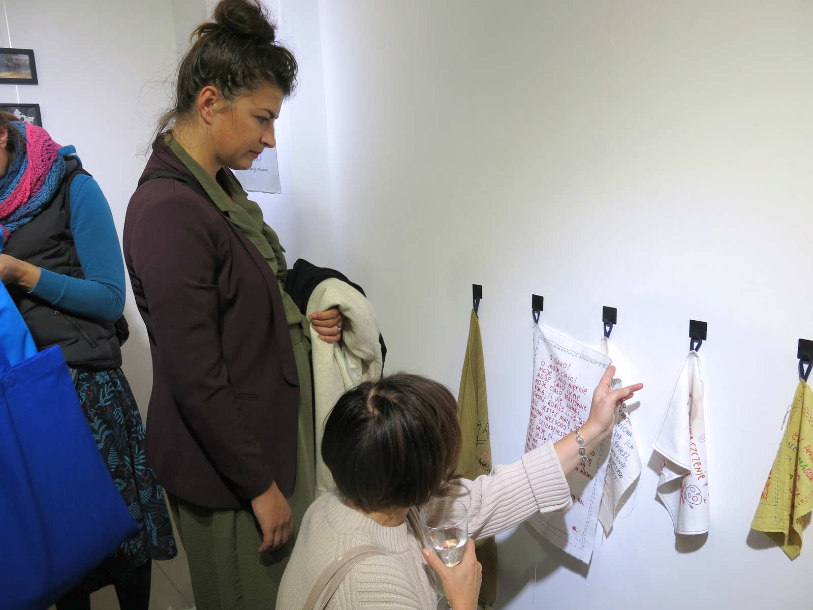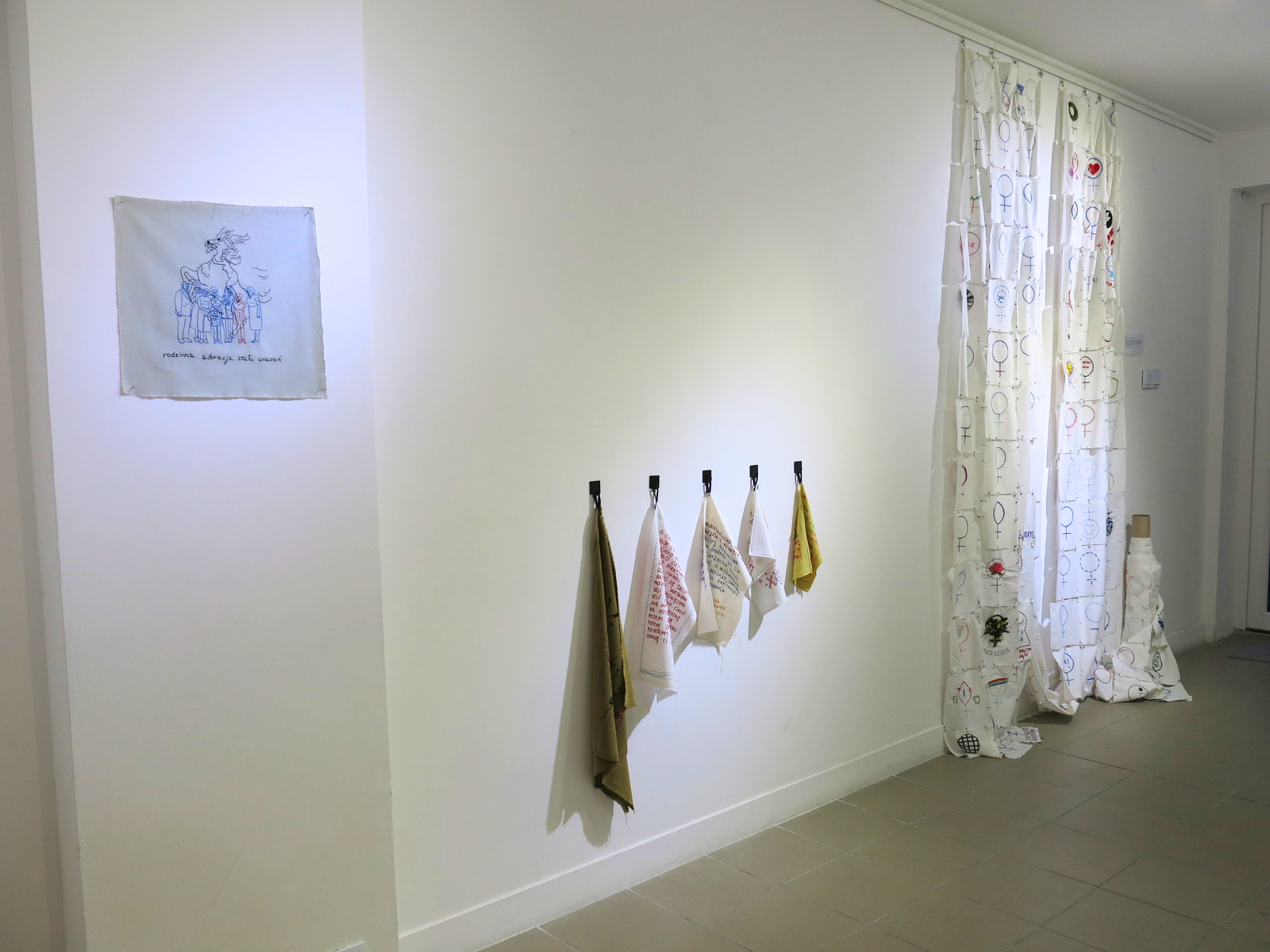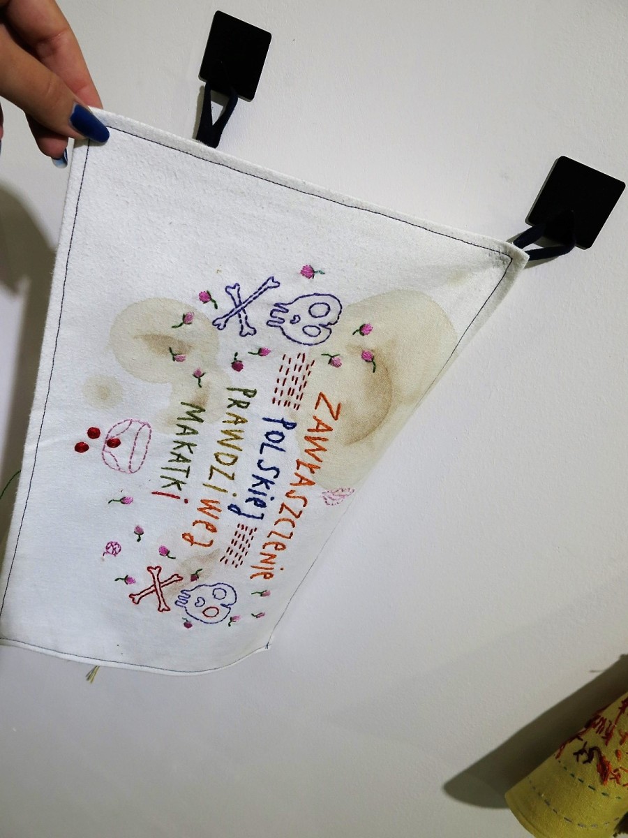Do stworzenia wystawy Nici porozumienia zainspirowała mnie feministyczna sztuka tekstylna i moja babcia, która od kiedy pamiętam wyszywa ozdoby dla całej rodziny. Za haftem ciągnie się długa historia przesycona uprzedzeniami i dyskryminacją, dlatego też powstające obecnie prace ciągle od nowa konfrontują się z tradycyjnymi schematami. Współczesne wyszywanki nieraz wyrażają gniew czy poczucie niesprawiedliwości, a tym samym nawiązują porozumienie z kobietami z przeszłości, którym towarzyszyły podobne emocje: z sufrażystkami, które maszerowały pod haftowanymi banerami i żądały należnych im praw, z kobietami, dla których haftowanie było przykrym obowiązkiem uzasadnionym tym, że szanująca się dama musiała wyszywać; z tymi, dla których była to jedyna przyjemność pozwalająca na wyrażenie siebie i z tymi, które w młodym wieku traciły wzrok, bo dzierganie było niemal jedynym zajęciem umożliwiającym kobietom zarobek.