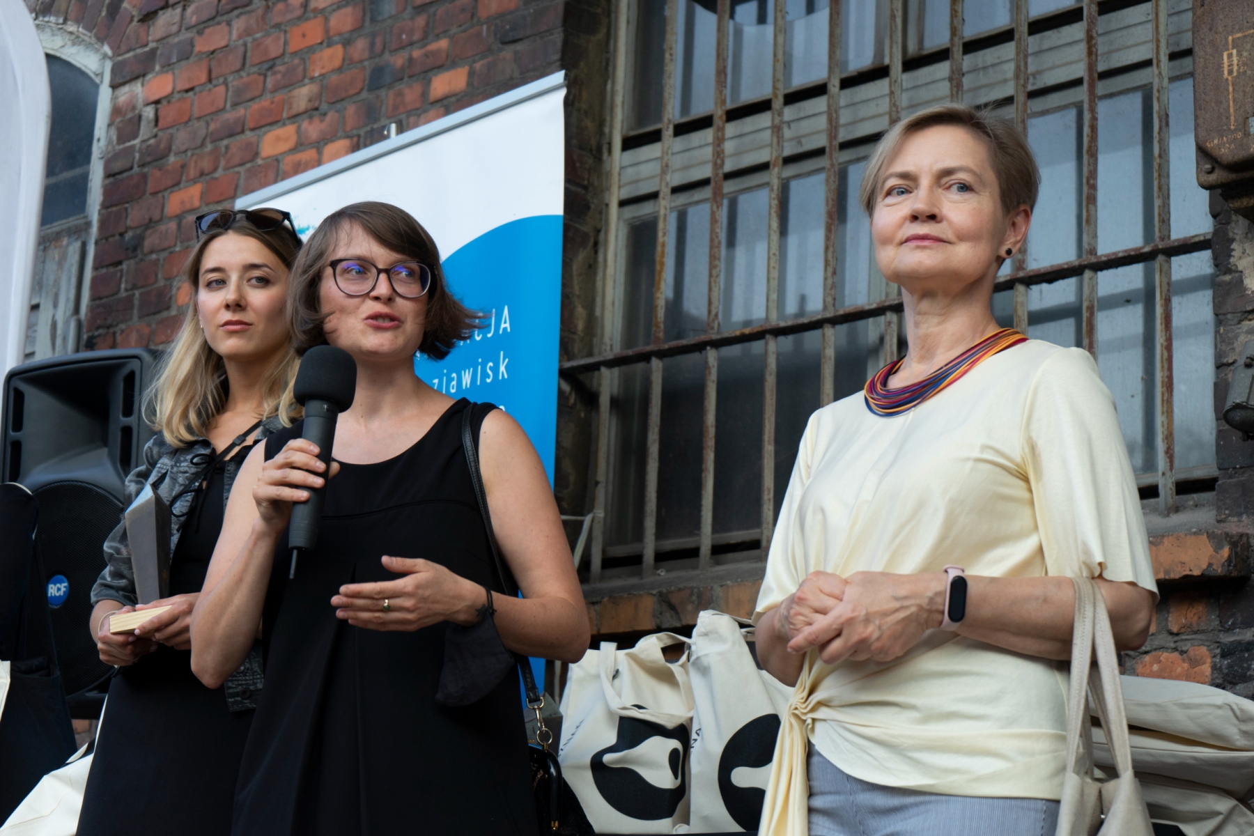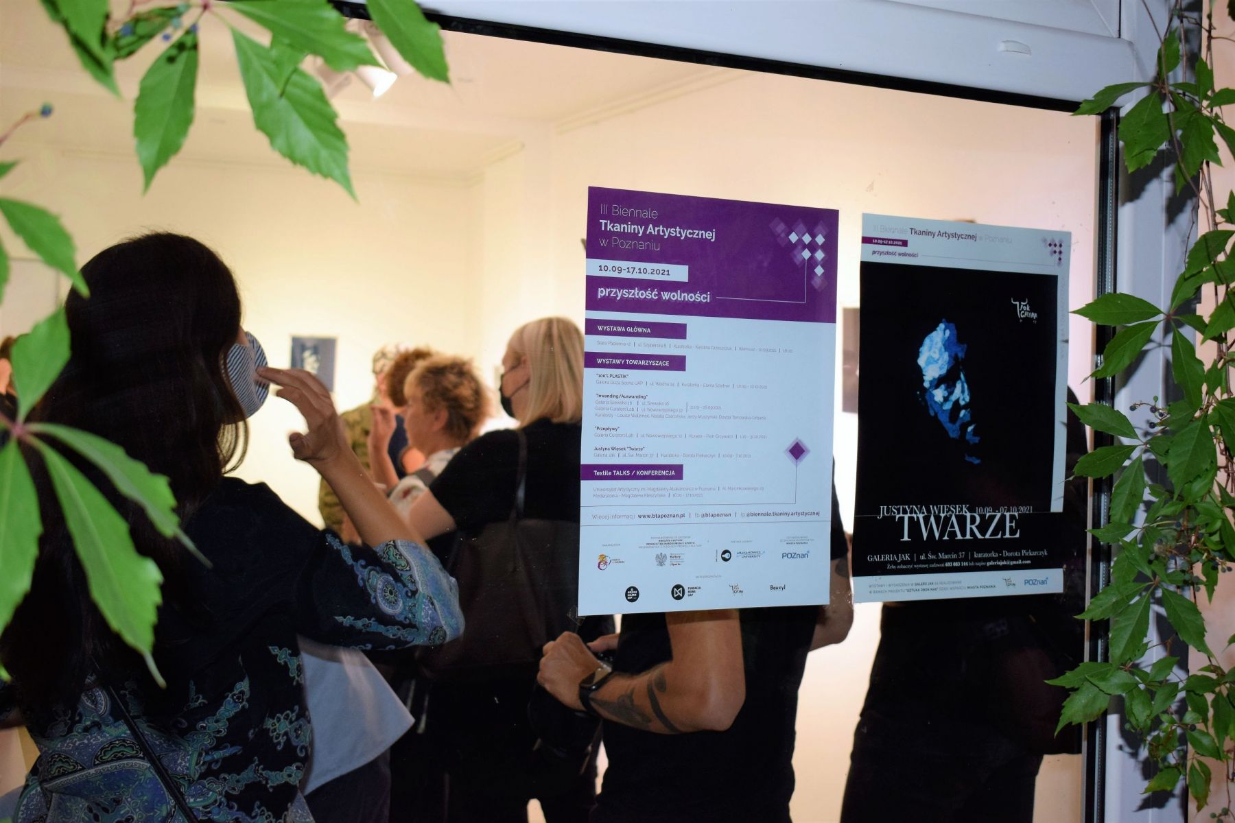 Wystawa warszawskiej artystki – Justyny Więsek (1988) „Twarze” – towarzyszy III Biennale Tkaniny Artystycznej w Poznaniu. Artystka prezentuje cykl batików na bawełnie, które powstają nieprzerwanie od 2015 roku. Miniatury utrzymane są w monochromatycznej skali barwnej i przedstawiają twarze wyłaniające się z ciemnego tła. Są to portrety wybitnych przedstawicieli polskiej kultury i sztuki, którzy swoją twórczością wywarli na autorkę wpływ i skłonili ją do refleksji. Prezentowany na wystawie cykl jest zarówno hołdem, jak i wyrazem przemyśleń artystki na temat miejsca autorytetów w czasach kryzysu wartości, jaki można zaobserwować zarówno w Polsce, jak i na świecie. Każdy z portretów ma przypisany numer, według kolejności powstawania, żaden z nich nie jest jednak podpisany nazwiskiem portretowanej osoby. Autorytety jednego pokolenia w naturalnym procesie z biegiem lat odchodzą powoli w niepamięć, a ich nazwiska i dorobek zacierają się w zbiorowej pamięci. Proces ten jednak gwałtownie przyśpieszył, czego wynikiem w opinii autorki jest deficyt autorytetów i pogłębiający się kryzys społeczny.